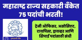 महाराष्ट्र राज्य सहकारी बँकेत ७५ पदांची भरती! ट्रेनी ऑफिसर, असोसिएट, टायपिस्ट,...