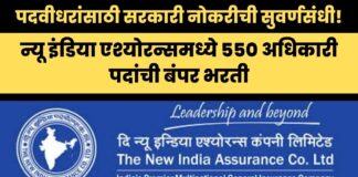 पदवीधरांसाठी सरकारी नोकरीची सुवर्णसंधी! न्यू इंडिया एश्योरन्समध्ये ५५० अधिकारी पदांची बंपर...