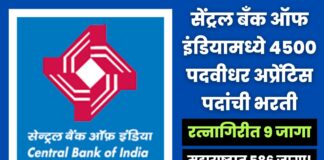 सेंट्रल बँक ऑफ इंडियामध्ये ४५०० पदवीधर अप्रेंटिस पदांची भरती; महाराष्ट्रात ५८६...