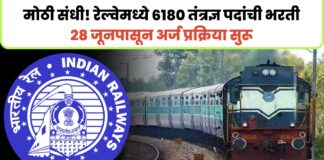 मोठी संधी! रेल्वेमध्ये 6180 तंत्रज्ञ पदांची भरती; 28 जूनपासून अर्ज प्रक्रिया...