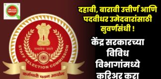 SSC मार्फत केंद्र सरकारच्या विविध विभागांमध्ये हजारो पदांची भरती; महाराष्ट्रासाठी 483...