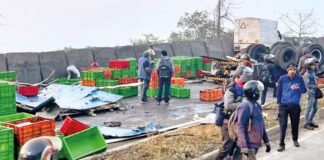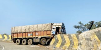 भोस्ते घाटात ट्रकची संरक्षक भिंतीला धडक; चालक गंभीर