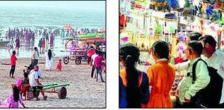 पर्यटकांच्या गर्दीने गणपतीपुळे समुद्रकिनारा फुलला