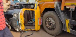 ट्रक रिक्षा अपघातात रिक्षाचे मोठे नुकसान