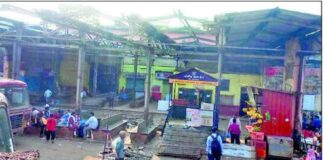 खेड बसस्थानक परिसरात छप्पर दुरुस्तीचे कामकाज धोकादायकरीत्या सुरू