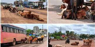 रत्नागिरी : महामार्गावर ठाण मांडलेल्या मोकाट जनावरांमुळे वाहनचालक त्रस्त