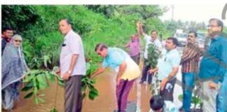 चिपळूण : मिरजोळी साखरवाडी रस्त्यातील खड्ड्यात वृक्षारोपण