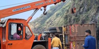 आंबा घाटात ट्रक पलटी; तीन तास वाहतूक ठप्प