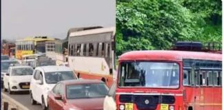 मुंबई-पुणे महामार्गावर मोठी वाहतूक कोंडी, मुंबईला जाणाऱ्या सर्व एसटी बसच्या फेऱ्या...