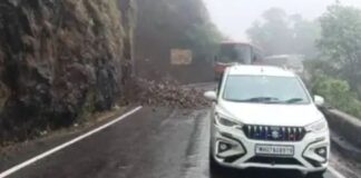 आंबोली घाटात दरड कोसळली, वाहनांच्या रांगा..