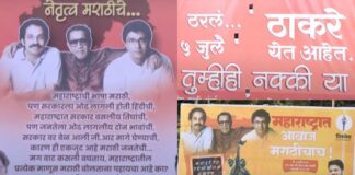 ठाकरे बंधूंच्या खांद्यावर बाळासाहेबांचा हात अन् भगवा रंग., विजयी मेळाव्यापूर्वीच्या बॅनरने...