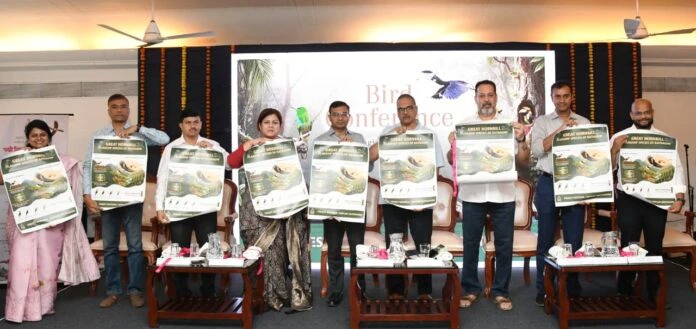 रत्नागिरी: निसर्गसंपन्न कोकणच्या शिरपेचात आणखी एक मानाचा तुरा रोवला गेला आहे. रत्नागिरी जिल्ह्याचे पालकमंत्री ना. उदय सामंत आणि जिल्हाधिकारी मनुज जिंदल यांच्या संकल्पनेतून रत्नागिरीत पहिल्यांदाच भव्य ‘जिल्हास्तरीय पक्षीमित्र संमेलन’ पार पडले. या संमेलनात ‘ग्रेट इंडियन हॉर्नबिल’ अर्थात महाधनेश या पक्षाला जिल्ह्याची ‘फ्लॅगशिप स्पेसीज’ (मानाची प्रजाती) म्हणून घोषित करण्यात आले आहे.