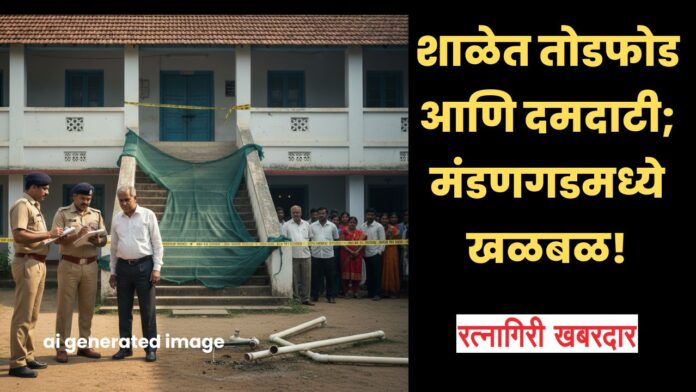 रत्नागिरी/बाणकोट : रत्नागिरी जिल्ह्यातील मंडणगड तालुक्यातील वेसवी-शिपोळे येथील इनामदार पब्लिक इंग्लिश स्कूलमध्ये बेकायदेशीर प्रवेश करून तोडफोड आणि दमदाटी केल्याचा धक्कादायक प्रकार उघडकीस आला आहे. शाळेचा जिना अडवून मुलांच्या शिक्षणात अडथळा आणणाऱ्या आणि शाळेच्या मालमत्तेचे नुकसान करणाऱ्या आरोपीविरुद्ध बाणकोट पोलीस ठाण्यात गुन्हा दाखल करण्यात आला आहे.