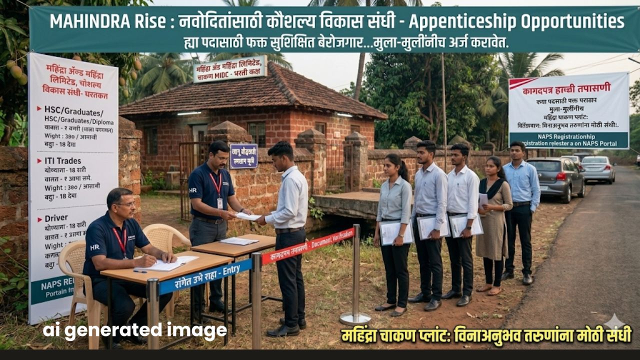 पुणे/चाकण (प्रतिनिधी): देशातील अग्रगण्य ऑटोमोबाईल कंपनी ‘महिंद्रा अँड महिंद्रा’ (Mahindra & Mahindra) च्या चाकण प्लांटमध्ये नवोदित तरुणांसाठी कौशल्य विकासाची आणि रोजगाराची उत्तम संधी उपलब्ध झाली आहे. ‘Mahindra Rise’ अंतर्गत आयोजित या भरती प्रक्रियेचे खास वैशिष्ट्य म्हणजे, ज्यांना कामाचा कोणताही पूर्व अनुभव नाही, अशा सुशिक्षित बेरोजगार मुला-मुलींना या पदांसाठी प्राधान्य दिले जाणार आहे.