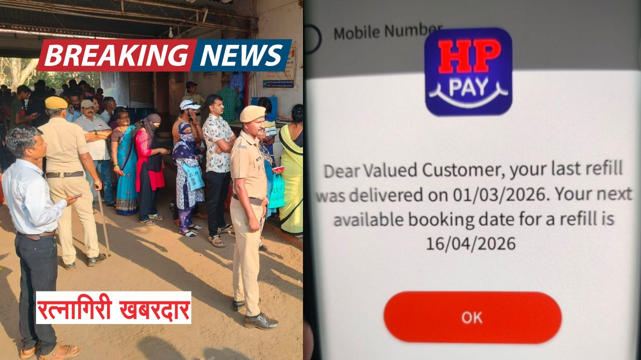 रत्नागिरी: रत्नागिरी शहरात सध्या गॅस सिलिंडरच्या तुटवड्याची अफवा आणि बुकिंगला होणारा विलंब यामुळे ग्राहकांमध्ये चिंतेचे वातावरण पसरले आहे. शहरातील प्रसिद्ध ‘शांतादुर्गा गॅस एजन्सी’च्या बाहेर आज ग्राहकांनी सिलिंडर बुकिंगसाठी मोठी गर्दी केली होती. परिस्थिती नियंत्रणाबाहेर जाऊ नये आणि सुरक्षेच्या कारणास्तव गॅस एजन्सीबाहेर पोलिसांचा मोठा बंदोबस्त तैनात करण्यात आला आहे.