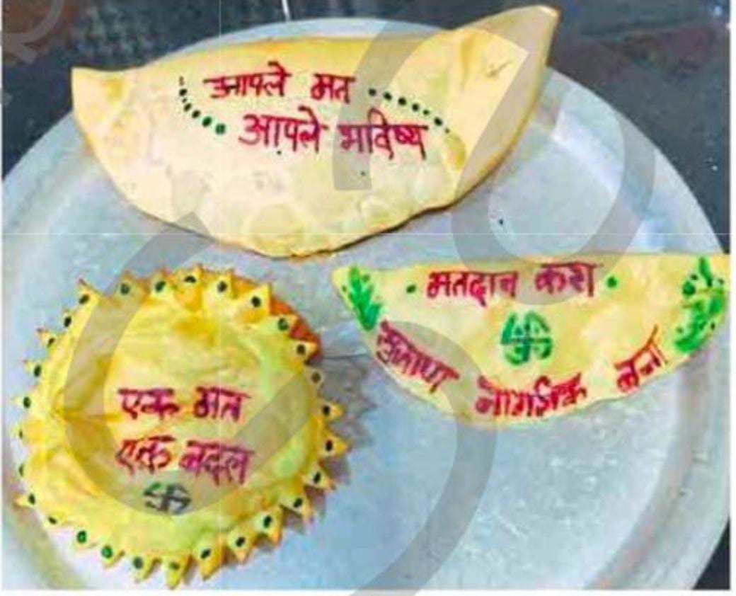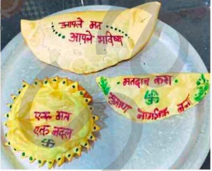 ए जी. हायस्कूलमधील विद्यार्थिनींनी हा प्रयोग केला आहे. विद्यार्थ्यांना तशा सूचना देण्यात आल्या होत्या. दिवाळीची सुट्टी पडली असली तरी मतदान जनजागृती ही वेगवेगळ्या पद्धतीने होणे आवश्यक आहे. त्यामुळे या विद्यार्थिनींनी चक्क फराळावरच मतदान करण्याबाबतचे संदेश लिहून घरोघरी वाटप करायचे ठरवले. फराळाप्रमाणे जिलेबीमधूनदेखील अशा पद्धतीच्या सूचना तयार करून जनजागृती केली जाणार असल्याचे स्विपचे विधानसभा नोडल अधिकारी अण्णासाहेब बळवंतराव यांनी सांगितले.
