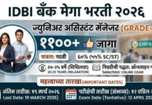 - अर्ज करण्याची अंतिम तारीख: ६ एप्रिल २०२६
