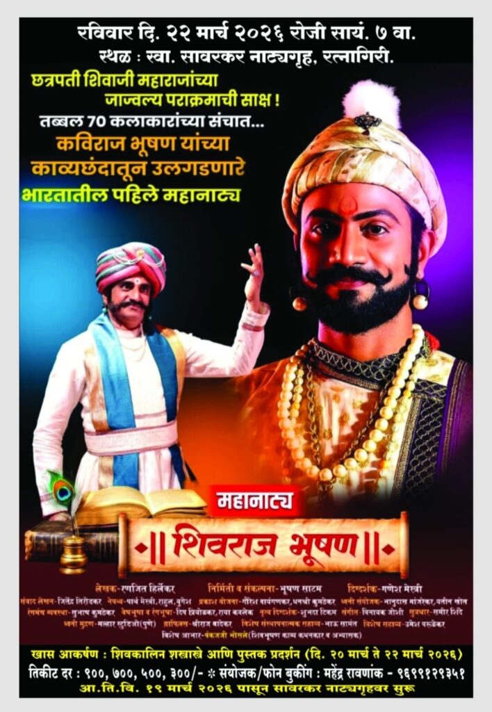 छत्रपती शिवाजी महाराज हे नाव प्रत्येक मराठी माणसाच्या श्वासात आहे. मात्र, महाराजांची हिंदवी स्वराज्याची पताका आणि त्यांचा वैभवशाली पराक्रम उत्तर भारतात पोहोचवण्याचे महान कार्य थोर कवी भूषण यांनी केले. त्यांच्या याच अजोड आणि विररसाने ओतप्रोत भरलेल्या काव्यावर आधारित ‘शिवराज भूषण’ हे महानाट्य आता रत्नागिरीकरांना प्रत्यक्ष अनुभवता येणार आहे.