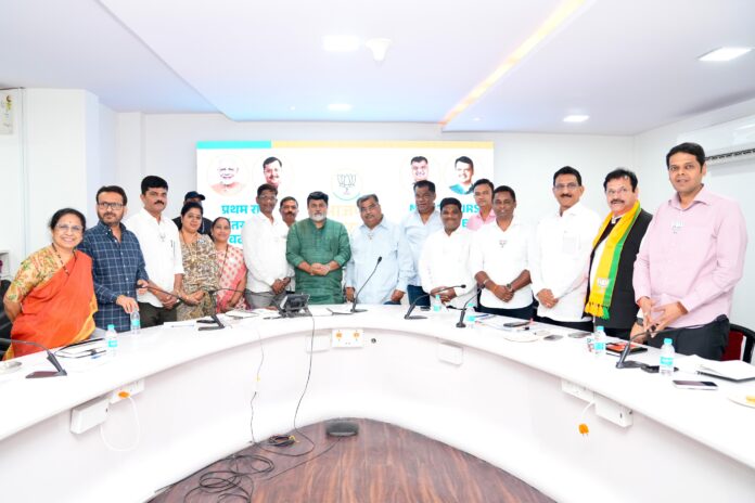 मुंबई : भारतीय जनता पार्टीचे प्रदेशाध्यक्ष रवींद्र चव्हाण तथा रत्नागिरीचे पालकमंत्री उदय सामंत यांच्या प्रमुख उपस्थितीत मुंबई येथे महत्त्वपूर्ण बैठक पार पडली. यावेळी आमदार किरण सामंत, रत्नागिरी शहराध्यक्ष दादा ढेकणे, महिला मोर्चा जिल्हाध्यक्षा तथा नगरसेविका वर्षा ढेकणे, तसेच भाजपा पक्षाचे सर्व नगरसेवक राजू तोडणकर सुप्रिया रसाळ संदीप सुर्वेआणि उपनगराध्यक्ष समीर तिवरेकर पदाधिकारी सचिन करमरकर संदीप रसाळ उपस्थित होते.