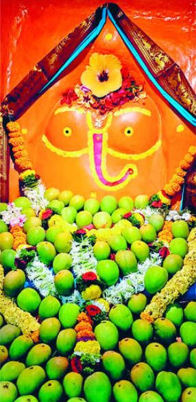 ही विशेष आम्रफळ आरास मालगुंड-गणपतीपुळे पंचक्रोशीतील ज्येष्ठ आंबा व्यावसायिक अनंत मोरे आणि समस्त मोरे परिवारातर्फे करण्यात आली. गणपतीपुळे येथील स्वयंभू श्री लंबोदराच्या मुख्य गाभाऱ्यात मंदिराचे मुख्य पुजारी अमित घनवटकर यांच्या हस्ते ही आरास श्रींच्या चरणी अर्पण करण्यात आली.
