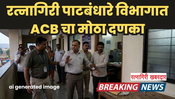 रत्नागिरी: रत्नागिरी जिल्हा लाचलुचपत प्रतिबंधक विभागाने (ACB) आज एक मोठी कारवाई करत पाटबंधारे विभागाच्या कार्यकारी अभियंत्यासह एका कनिष्ठ लिपिकाला २ लाख रुपयांची लाच स्वीकारताना रंगेहात पकडले आहे. कपात केलेली देयकाची रक्कम परत मिळवून देण्यासाठी ३ लाख ४० हजारांची मागणी करून तडजोडीअंती २ लाख रुपये स्वीकारणे या दोन्ही लोकसेवकांना महागात पडले आहे. या कारवाईमुळे शासकीय वर्तुळात मोठी खळबळ उडाली आहे.