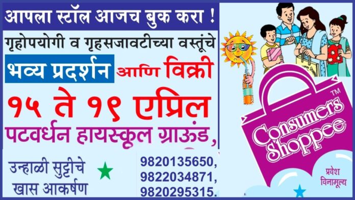 रत्नागिरी : रत्नागिरीकरांसाठी आनंदाची बातमी आहे! गृहोपयोगी आणि गृहसजावटीच्या वस्तूंचे महाराष्ट्रातील अग्रगण्य प्रदर्शन ‘कन्झ्युमर्स शॉपी’ पुन्हा एकदा रत्नागिरीत सज्ज झाले आहे. येत्या १५ ते १९ एप्रिल २०२६ या कालावधीत पटवर्धन हायस्कुल ग्राऊंड, आठवडा बाजार येथे हे भव्य प्रदर्शन आणि विक्री आयोजित करण्यात आली आहे.