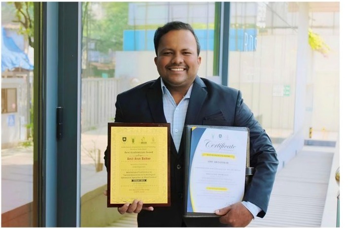 दापोली : इंडियन सोसायटी ऑफ ऍग्रीकल्चर सायन्स अँड टेक्नॉलॉजी रिसर्च, नोएडा उत्तर प्रदेश या सोसायटीच्या कार्यकारी समितीकडून श्री. अमित अरुण बैकर यांना प्रतिष्ठित “सर्वोत्कृष्ट शिक्षणतज्ञ” हा पुरस्कार प्रदान करण्यात आला आहे. सदर पुरस्कार हा कृषी आणि संबंधित विज्ञानातील वर्तमान नवकल्पना आणि तांत्रिक प्रगतीवर आधारित आयोजीत करण्यात आलेल्या आंतरराष्ट्रीय परिषदेमध्ये बहाल करण्यात आला. गुरु काशी युनिव्हर्सिटी, तळवंडी साबो (ICAR ऍक्रेडीटेड) आणि जस्ट ऍग्रीकल्चर ग्रुप व ISASTR नोएडा यांच्या संयुक्त विद्यमाने हि आंतरराष्ट्रीय परिषद गुरु काशी युनिव्हर्सिटी, तळवंडी साबो येथे यशस्वीरित्या पार पडली. डॉ. पी.के. सिंग (कृषी आयुक्त, भारत सरकार) हे या कार्यक्रमाचे प्रमुख पाहुणे होते. विविध ११ देशांतील एक हजार पेक्षा अधिक संशोधन अभ्यासक, प्राध्यापक व विद्यार्थी सहभागी झाले होते.