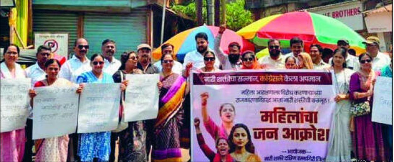 गुरुवारी (दि. २३) सकाळी ११ वाजता आयोजित या आंदोलनात भाजपचे स्थानिक पदाधिकारी, कार्यकर्ते, महिला आणि युवक मोठ्या संख्येने सहभागी झाले होते. काँग्रेस पक्षाच्या विरोधात नागरिकांनी आपला संताप व्यक्त केला.