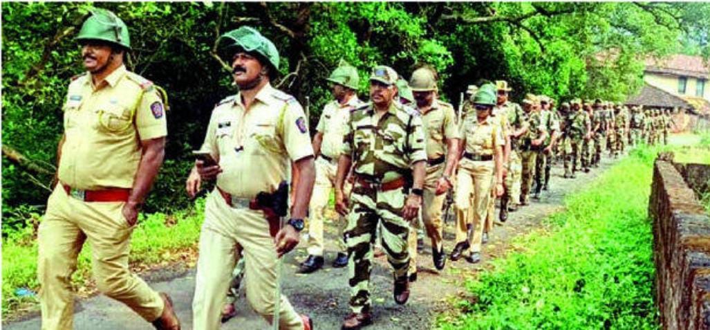नाटे : विधानसभा निवडणुकीच्या पार्श्वभूमीवर लागू असलेल्या आचारसंहितेच्या अंमलबजावणीवर लक्ष ठेवण्यासाठी तसेच सण उत्सवादरम्यान ग्रामीण भागासह शहरात कुठलाही अनुचित प्रकार घडू नये व कायदा व सुव्यवस्था अबाधित राहावी, यासाठी जैतापूर येथे पोलिसांनी रूट मार्च काढला. रत्नागिरी जिल्हा पोलिस अधीक्षक धनंजय कुलकर्णी आणि वरिष्ठ अधिकाऱ्यांच्या मार्गदर्शनाखाली सागरी पोलिस ठाणे नाटेच्या वतीने जैतापूर एसटी स्टँड, बाजारपेठ, मांजरेकर वाडी मार्गे पुन्हा एसटी स्टैंड असा रूट मार्च घेण्यात आला. यावेळी पोलिस निरीक्षक ए. वी. खेडकर, सहायक पोलिस निरीक्षक अविनाश केदारी, नाटे कार्यक्षेत्रातील सर्व दृरक्षेत्रांचे पोलिस अंमलदार पोलिस, केंद्रीय राखीव सुरक्षा बलचे जाधव आणि सुरक्षा दलाचे सर्व जवान सहभागी झाले होते.