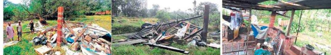 राजापूर : गेल्या काही दिवसांपासून तालुक्यामध्ये पावसाने धुमाकूळ घातला आहे. ढगांचा गडगडाट आणि विजांचा कडकडाट करत दिवसभरामध्ये कधीही कोसळणाऱ्या पावसाने भातशेतीचे अतोनात नुकसान झाले आहे. विजा पडून नुकसान होण्याचे प्रमाणही वाढले आहे. गेल्या आठवड्यात झालेल्या वादळी पावसामध्ये चुनाकोळवण येथे घर, दुकानांची पडझड होऊन सुमारे चाळीस हजारांचे नुकसान झाले आहे. या पावसामुळे तालुक्यात सुमारे पाच लाखांचे नुकसान झाले आहे. गेले महिनाभर वगांचा गडगडाट आणि विजांचा कडकडाट करत कोसळणाऱ्या या पावसाने भातशेतीचे अतोनात नुकसान झाले आहे. भातशेती आडवी पडून भाताच्या लोंब्याने नव्याने कोंबही फुटले आहेत. त्यातून झालेल्या नुकसानीने शेतकरी राजा पुरता हताश झाला आहे. आंबोळगड, तुळसुंदे, गोठणेदोनिवडे, कोंडवे आणि हातिवले आरेकरवाडी अशा पाच ठिकाणी घरांवर वीज कोसळून नुकसान झाले आहे. विजेचा धक्का बसून काही व्यक्ती जखमी झाल्याच्याही घटना घडल्या आहेत. सोसाट्याच्या वाऱ्यामध्ये घरांची पडझड होऊन लाखो रुपयांचे नुकसान झाले आहे. गेल्या आठवड्यामध्ये वादळी वाऱ्यासह कोसळलेल्या परतीच्या पावसामध्ये चुनाकोळवण येथे घरांची पडछाड होऊन नुकसान झाले आहे. त्यामध्ये चंद्रकांत पांचाळ यांच्या घराचे २२ हजार ६०० रुपये, शांताराम पाटणकर यांच्या दुकानाचे १४ हजार ४०० रुपये, अनिरुद्ध जाधव यांच्या घराचे २ हजार रुपये, संजय कांबळे यांच्या घराचे १ हजार रुपये अशा चाळीस हजार रुपयांच्या नुकसानीचा समावेश आहे.