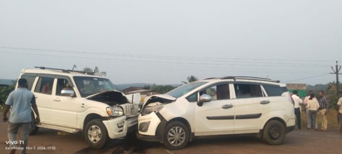 रत्नागिरी : गणपतीपुळे येथून दर्शन घेऊन येणार्या स्कॉर्पिओ गाडीला निवळी येथे मुंबई – गोवा महामार्गावर वाहन येताना मुंबईकडून आलेल्या दुसर्या मोटारीने जोरदार धडक दिली. त्यात लहान मुलांसह ९ जण जखमी झाले आहेत. धडक इतकी मोठी होती की स्कॉर्पिओमधील सर्व प्रवाशांनी आक्रोश केला.