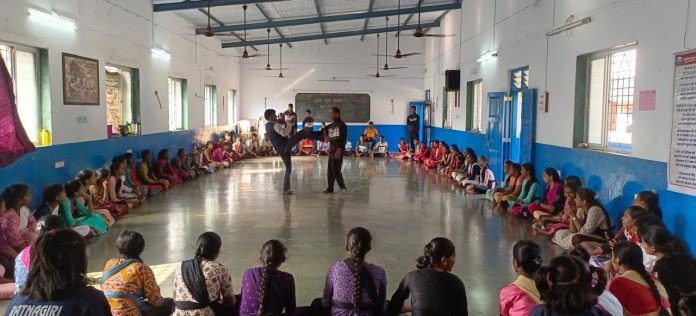 याशिबिरात 11वी आणि 12वी मधील 63 विद्यार्थ्यांनी सहभाग घेतला आहे. ‘ग्राम विकासातून व्यक्तिमत्व विकास’ या संकल्पनेला अनुसरून विविध उपक्रमांचे आयोजन शिबिरात केले आहे. यापैकी स्व-संरक्षण विषयावर मार्गदर्शन आणि कराटे प्रात्यक्षिक घेण्यासाठी रत्नागिरी मध्ये गेली 27 वर्ष मार्शल आर्ट च ट्रेनिंग देणारे व स्वयंसिद्धा शासकीय प्रशिक्षक श्री. राम कररा, त्यांचे सहकारी व विद्यार्थी यांचे शिबिरात मार्गदर्शन आयोजित करण्यात आले.’कोणाला इजा करण्यासाठी नव्हे, तर स्वतःचा बचाव करण्यासाठी’ आपण या कौशल्याचा वापर करणार असल्याचे श्री.कररा यांनी स्वयंसेवकांना सांगितले. आपणावर हल्ला झाल्यास अनपेक्षित प्रतिहल्ला केल्यास हल्लेखोर बावचळतो व आपण त्याच्यावर वरचढ होऊ शकतो. स्व संरक्षणाचे कौशल्य प्राप्त करण्यासाठी सततचा सराव व निरोगी शरीराची आवश्यकता असते. त्याच बरोबर आत्मविश्वास व धैर्य यामुळे आपणावर आलेल्या संकटातून आपण बचावू शकतो.