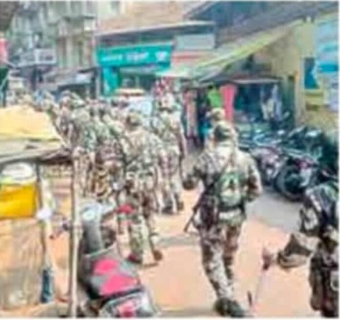 संगमेश्वर : संगमेश्वर पोलिस ठाण्याच्यावतीने संगमेश्वर बाजारपेठेतून रूट मार्च काढण्यात आला. संगमेश्वर ठाण्याचे पोलिस निरीक्षक अमित यादव यांच्या मार्गदर्शनाखाली हा रूट मार्च काढण्यात आला. सर्वत्र विधानसभा व यांच्या निवडणुकीचे वातावरण आहे. त्यामुळे डिलांच्या निवडणूक भयमुक्त होण्यासाठी हा रूट मार्च’ साधत काढण्यात आला. सेंट्रल सेक्युरिटी करीत फोर्स या रूट मार्चमध्ये सहभागी झाली होती.