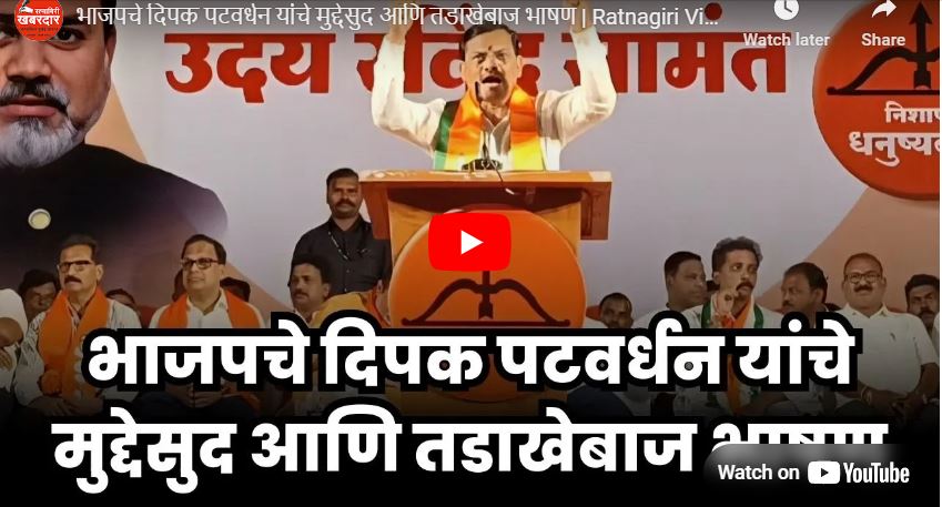 रत्नागिरी वाटद खंडाळा येथे भाजपचे दिपक पटवर्धन यांचे मुद्देसुद आणि तडाखेबाज भाषण | Ratnagiri Vidhansabha 2024 | Uday Samant By Team Ratnagiri Khabardar - November 15, 2024 FacebookTwitterPinterestWhatsApp दैनिक रत्नागिरी खबरदारISO 9001:2015 CERTIFIED(RNI NO. MAHMAR/2013/57411)शासनमान्य रजिस्टर न्यूजपेपर10:30 15-11-2024