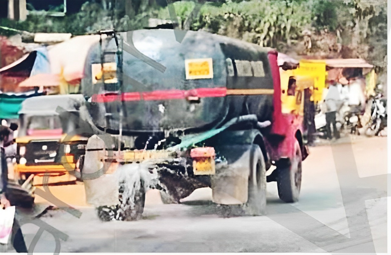 संगमेश्वर महामार्गावर टँकरद्वारे पाणी फवारणीचे काम सुरू आहे.