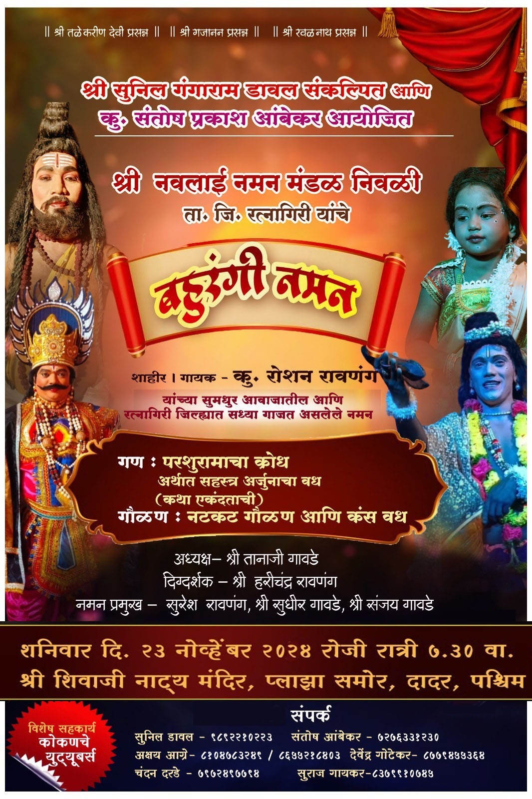रत्नागिरी : मुंबापुरीच्या रंगमंचावर गेली २ वर्षे अधिराज्य गाजवणारे निवळी येथील नवलाई नमन मंडळ बहुरंगी नमनाचा कार्यक्रम पुन्हा मुंबापुरीत घेऊन जात आहे. येत्या २३ नोव्हेंबरला मुंबईत दादर येथील शिवाजी नाट्य मंदिरमध्ये हे नमन रंगणार आहे.
