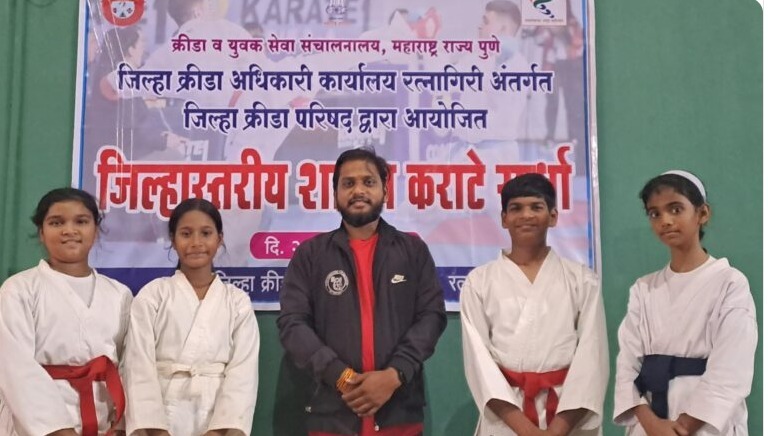 रत्नागिरी : जिल्हास्तरीय शालेय कराटे स्पर्धेत नवनिर्माण हाय इंग्लिश मीडियम स्कूलच्या चार विद्यार्थ्यांनी चमकदार कामगिरी करत सुवर्ण, रौप्य आणि कांस्यपदकांवर आपले नाव कोरले. ही स्पर्धा काल (२१ नोव्हेंबर) जिल्हा क्रीडा अधिकारी कार्यालयाच्या सभागृहात झाली.