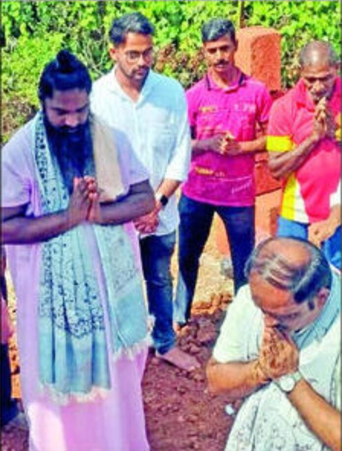 राजापूर : स्वामी गगनगिरी महाराजांचे प्रमुख तपोस्थान म्हणून प्रसिद्ध असलेल्या राजापूर तालुक्यातील आंगले येथील गगनगिरी मठाची वास्तू जुनी झाल्यामुळे नवीन वास्तू उभारण्याचे आंगले ग्रामस्थांनी व परिसरातील गगनगिरी भक्त मंडळींनी ठरविले. त्यानुसार नियोजित जागेचे पूजन करून नवीन आश्रमाचा पायाभरणी समारंभ नुकताच ओणी आश्रमप्रमुख नाथयोगी उल्हासगिरी महाराज यांच्या हस्ते संपन्न झाला. याप्रसंगी श्री क्षेत्र गगनगडाचे प्रमुख विश्वस्त संजयसिंह पाटणकर यांच्या हस्ते शिलापूजन सोहळा संपन्न झाला. या आश्रमासाठी स्वामी गगनगिरी महाराजांचे सदभक्त यतीश सहदेव सरवणकर हे विशेष सहकार्य करीत असून आंगले ग्रामस्थ व गगनगिरी भक्त मंडळी त्यांना सहकार्य करीत आहेत. या कार्यक्रमास आंगले गावचे रहिवासी तसेच परिसरातील ग्रामस्थ मंडळी व स्वामी गगनगिरी महाराजांची भक्त मंडळी मोठ्या संख्येने उपस्थित होती.