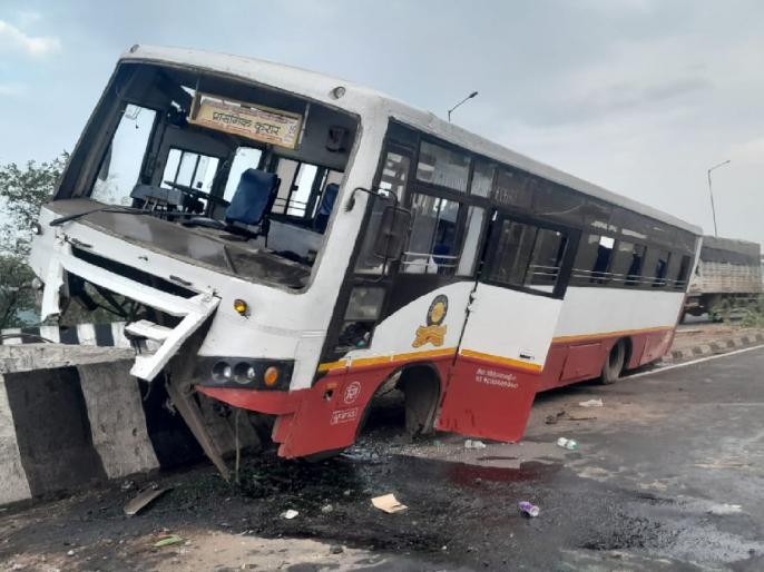 कणकवली : कणकवली तालुक्यातील मुंबई-गोवा महामार्गावर नांदगाव-ओटव फाटा येथील पुलावरील रस्ता दुभाजकाच्या संरक्षक कठड्याला आदळून पुणे ते ओरोस पर्यंत विद्यार्थ्यांची सहल घेऊन येणाऱ्या एसटी बसचा अपघात झाला.