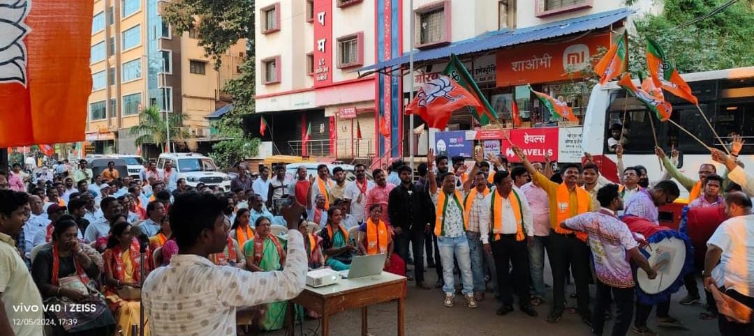 ◼️ विजयीरॅली काढत ढोल ताशांच्या गजरात फटाक्यांची आतिषबाजी करत भाजपाच्या वतीने करण्यात आला जल्लोष