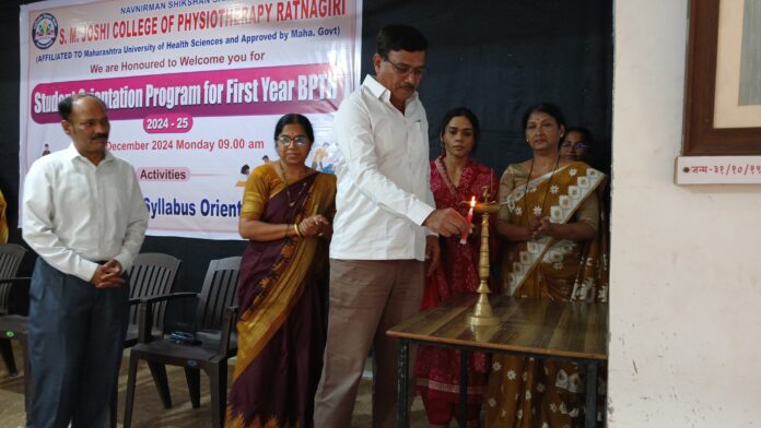 नवनिर्माण शिक्षण संस्था संचलित एस. एम. जोशी कॉलेज ऑफ फिजिओथेरपी रत्नागिरी या महाविद्यालयाचा आज स्टुडन्ट ओरिएंटेशन प्रोग्रॅम पार पडला. या कार्यक्रमाला प्रमुख पाहुणे म्हणून ते बोलत होते. यावेळी व्यासपीठावर शिक्षण संस्थेचे चेअरमन अभिजीत अभिजीत हेगशेट्ये, संचालिका सौ. सीमा हेगशेट्ये, फिजिओथेरपी महाविद्यालयाच्या संचालिका ऋतुजा हेगशेट्ये, प्राचार्य डॉ. मुकेश बाबू, डॉ. अनघा शेळके-शिंदे, डॅा. आर्या कुंटे शिक्षण संस्थेचे मुख्य कार्यकारी अधिकारी मंदार गीते उपस्थित होते.