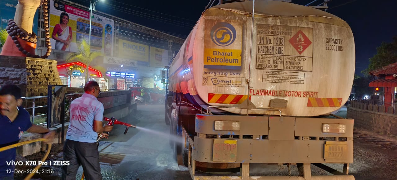 रत्नागिरी : शहरातील मारुती मंदिर येथे मोठा अपघात होता होता टळला आहे. पेट्रोल वाहतूक करणाऱ्या एका टँकरच्या चाकाला अचानक आग लागली. ही घटना लक्षात येताच तत्काळ अग्निशामन यंत्रणेला बोलवण्यात आलं. या टँकरचे ब्रेक लाइनर प्रचंड गरम होऊन टायरने पेट घेतल्याची घटना घडली. अग्निशमन यंत्रणा त्वरित पोचल्याने मोठा अनर्थ टळला. आज रात्री नऊच्या सुमारास ही घटना घडली आहे.