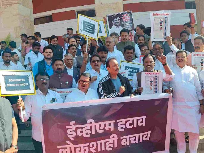 यावेळी नाना पटोले, अंबादास दानवे, सचिन अहिर, महेश सावंत, विजय वाडेट्टीवर, अनिल चौधरी, अभिजित वंजारी, नितीन राऊत, विकास ठाकरे, संजय मेश्राम, आमदार अभ्यंकर, वरूण सरदेसाई, अमित देशमुख आदीसह विरोधी पक्षाच्या आमदारांनी इव्हिएम हटावचे नारे देत सरकारचे लक्ष वेधले. संविधान वाचवा, इव्हिएम हटवा, घटना वाचवा, इव्हिएम सरकार हाय- हाय, अशी घोषणाबाजी केली.