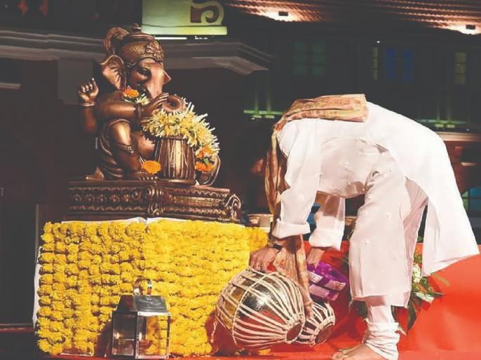 उस्ताद झाकीर हुसेन स्वत: दोन हातात तबला घेऊन रंगमंचावर आले आणि रंगमंचावर पाऊल ठेवताच समोरील श्रीगणेश मूर्तीसमोर नतमस्तक झाले, त्यांचा कलेप्रती असलेला आदर रत्नागिरीकरांना भावला आणि रत्नागिरीकरांनी त्यांच्या या कृतीचे टाळ्यांच्या गजरात स्वागत केले. त्याचवेळी त्यांच्या स्वागतासाठी ढोलवादन करण्यात आले. मराठमाेळ्या ढाेलवादनाचे आणि ढाेलवादकांचे उस्ताद झाकीर हुसेन यांनी काैतुकही केले.