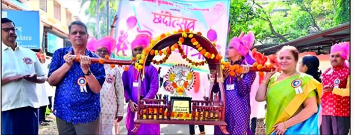 रत्नागिरी : अभ्यंकर कुलकर्णी कनिष्ठ महाविद्यालयाच्या ‘छंदोत्सव २०२४’च्या रंगमंचीय कार्यक्रमांची सुरुवात दिमाखदार अशा शोभायात्रेने व रत्नागिरी एज्युकेशन सोसायटीचे संस्थापक कै. बाबुराव जोशी व कै. मालतीताई जोशी यांच्या प्रतिकात्मक चित्ररथाने करण्यात आली. याप्रसंगी विद्यार्थी ढोल पथकात तर विद्यार्थिनीं लेझीम पथकात सहभागी झाले होते.