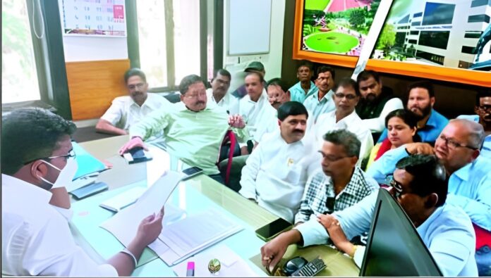 चिपळूण : चतुर्थ श्रेणी सर्वेक्षण अंतर्गत शहरातील सदनिकाधारक व व्यापारी यांच्या भरमसाट वाढलेल्या घरपट्टी कराविरोधात शहरातून संतप्त प्रतिक्रिया उमटल्या. याची दखल घेत गुरुवार, दि. १९ रोजी राष्ट्रवादी काँग्रेस शरदचंद्र पवार पक्षाने चिपळूण नगर परिषदेवर धडक देत मुख्याधिकारी यांच्याशी वाढीव घरपट्टी कराबाबत पूर्णतः शंका निरसन होईपर्यंत वाढीव घरपट्टी कराबाबत प्रशासनाने करधारकांवर कारवाई करू नये, अशी मागणी केली. यावेळी झालेल्या चर्चेत मुख्याधिकाऱ्यांनी तक्रारदार करदात्यांच्या कर आकारणीचे फेर सर्वेक्षण केले जाईल, असे सांगितले.