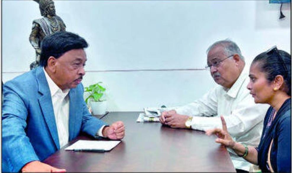 रत्नागिरी : विश्वमंगल गोशाळा आणि सोमेश्वर शांतीपीठच्या संस्थापिका अनुजा पेठकर आणि मार्गदर्शक व ट्रस्टी रवींद्र इनामदार यांनी माजी केंद्रीय मंत्री, खासदार नारायण राणे यांची भेट घेतली. राणे यांनी गोशाळेचे कार्य जाणून घेत मदत करण्याचे व एकदा गोशाळेला प्रत्यक्ष भेट देण्याचे आश्वासन दिले.