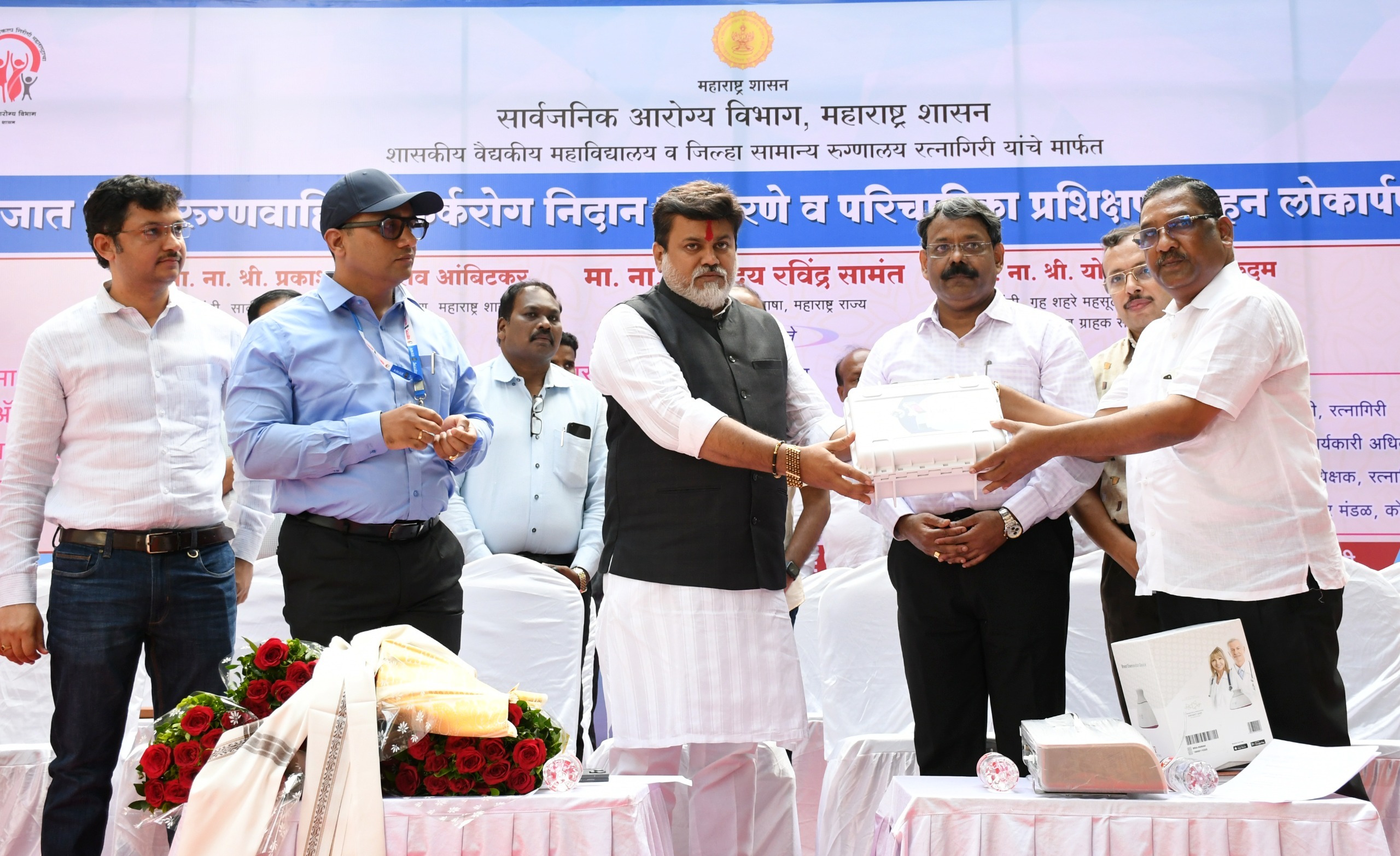 सार्वजनिक आरोग्य विभाग, शासकीय वैद्यकीय महाविद्यालय व जिल्हा सामान्य रुग्णालयामार्फत नवजात शिशू रुग्णवाहिका, कर्करोग निदान उपकरणे, 5 रुग्णवाहिका, परिचारिका प्रशिक्षण वाहन यांचा लोकार्पण सोहळा जिल्हा सामान्य रुग्णालयात उद्योगमंत्री ना. सामंत यांच्या हस्ते झाला. याप्रसंगी जिल्हाधिकारी एम. देवेंदर सिंह, मुख्य कार्यकारी अधिकारी कीर्ती किरण पुजार, जिल्हा शल्य चिकित्सक डॉ. भास्कर जगताप, शासकीय वैद्यकीय महाविद्यालयाचे अधिष्ठाता डॉ. जयप्रकाश रामानंद, जिल्हा आरोग्य अधिकारी डॉ. अनिरुध्द आठल्ये, तहसिलदार राजाराम म्हात्रे, माजी नगराध्यक्ष राहुल पंडित आदी उपस्थित होते.