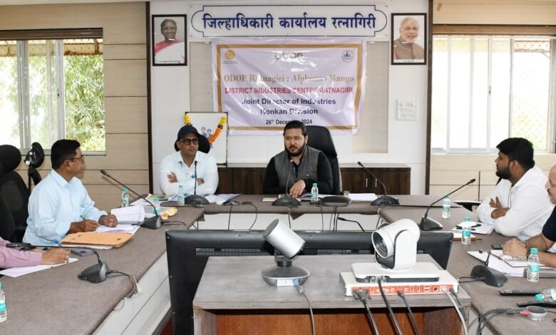 रत्नागिरी : केंद्र शासनाच्या ‘वन डिस्ट्रीक वन प्रॉडक्ट ॲवार्ड 2023-24’ साठी देशातील 60 जिल्ह्यांच्या नामांकनामध्ये आणि राज्यातील 14 जिल्ह्यांमध्ये रत्नागिरीचा समावेश झाला आहे. केंद्रीय वाणिज्य आणि उद्योग मंत्रालयाच्या इन्व्हेस्ट इंडियाचे सहायक व्यवस्थापक ताशी दोरजे शेर्पा यांनी आज याबाबत बैठक घेतली. शिवाया पडताळणीही केली. जिल्ह्याने केलेल्या कामगिरीबद्दल रत्नागिरी जिल्हा हापूस आंबा उत्पादनात देशात एक ब्रँड झाला आहे, असे गौरवोद्गार त्यांनी काढले.