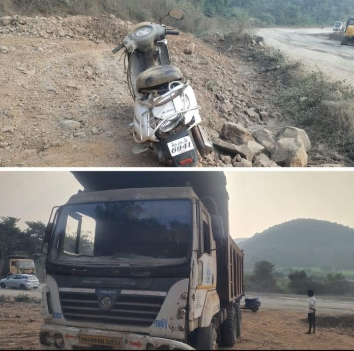 मुंबई गोवा महामार्गावर म्हात्रे कंपनीकडून चौपदरीकरणाचे काम सुरू आहे. म्हात्रे कंपनीतील डंपर चालकांचा मुजोरपणा दिवसेंदिवस वाढत आहे. गुरुवारी दुपारी २:३० वाजण्याच्या सुमारास संगमेश्वरहून रत्नागिरीच्या दिशेने दुचाकीस्वार (एमएच ०८ एई ६९४१) या दुचाकीवरून रत्नागिरीच्या दिशेने जात होता. यावेळी संगमेश्वरच्या दिशेने जाणाऱ्या म्हात्रे कंपनीच्या या डंपरने दुचाकीस्वाराला विरुद्ध दिशेला जाऊन जोरदार ठोकर दिली.